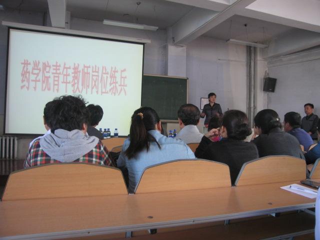 为落实我校提高教学质量工程的具体要求,加快青年教师课堂教学能力与水平的提高,结合学校期中教学检查,药学院于5月13日下午在南区综合楼0916教室举行了针对本学期担任主讲的40岁以下的青年教师课堂教学岗位练兵活动,参加此次练兵的8名青年教师全部为博士(含博士在读)。药学院全体督导、教师参加了岗位练兵活动。