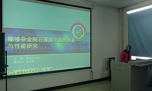 论坛第一位主讲人是哈尔滨工业大学环境科学专业的吕江维博士,论坛题目为“硼掺杂金刚石薄膜电极的制备与性能研究”。