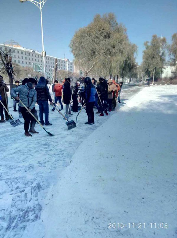 自11月中旬开始,哈尔滨市普降大雪,厚厚的积雪覆盖了整个校园,为确保校内师生安全,方便师生、行人出行。管理学院组织学生积极进行校园道路清雪。