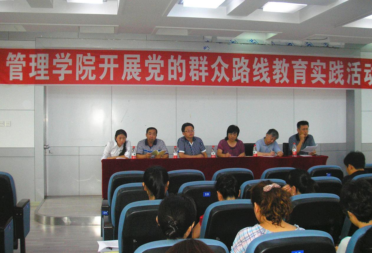 为贯彻落实中共中央关于开展党的群众路线教育实践活动精神,根据学校党委教育实践活动实施方案要求,8月14日,管理学院在管理学院楼310室召开开展党的群众路线教育实践活动培训学习大会,对全院的教育实践活动进行动员部署和集体学习。白世贞院长、谭士元书记、赵艳丽副院长、周游副院长、王中华副书记、团委书记曹桂彬以及全院教师参加了会议。