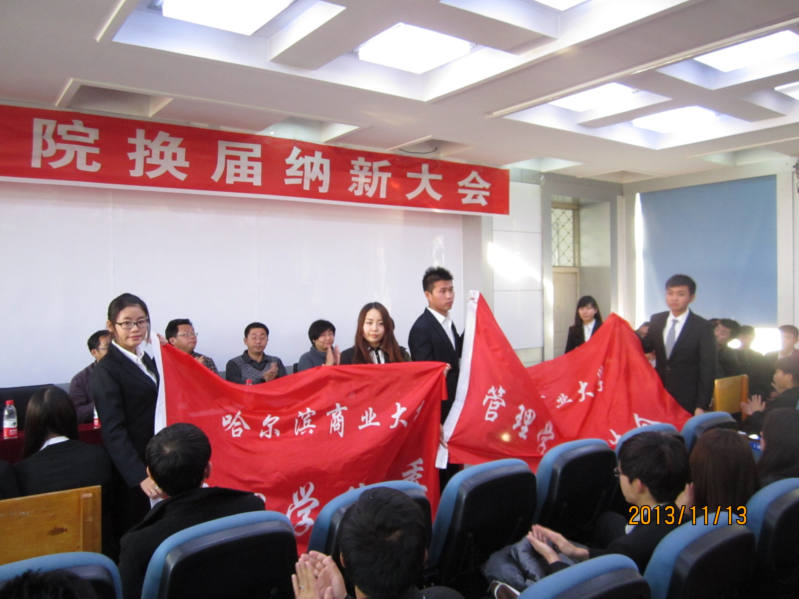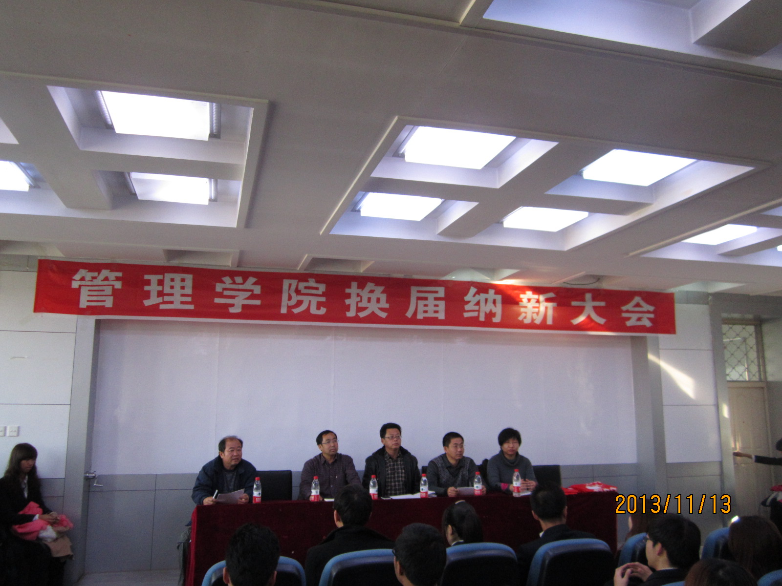 11月13日中午,哈尔滨商业大学管理学院学生组织换届暨纳新大会在管理学院310室隆重召开。出席本次会议的有管理学院党总支书记谭士元,党总支副书记王中华,团委书记曹桂彬,以及各年级的辅导员。大会由团委书记曹桂彬主持,学生会、团委全体成员及2013级新生参加会议。