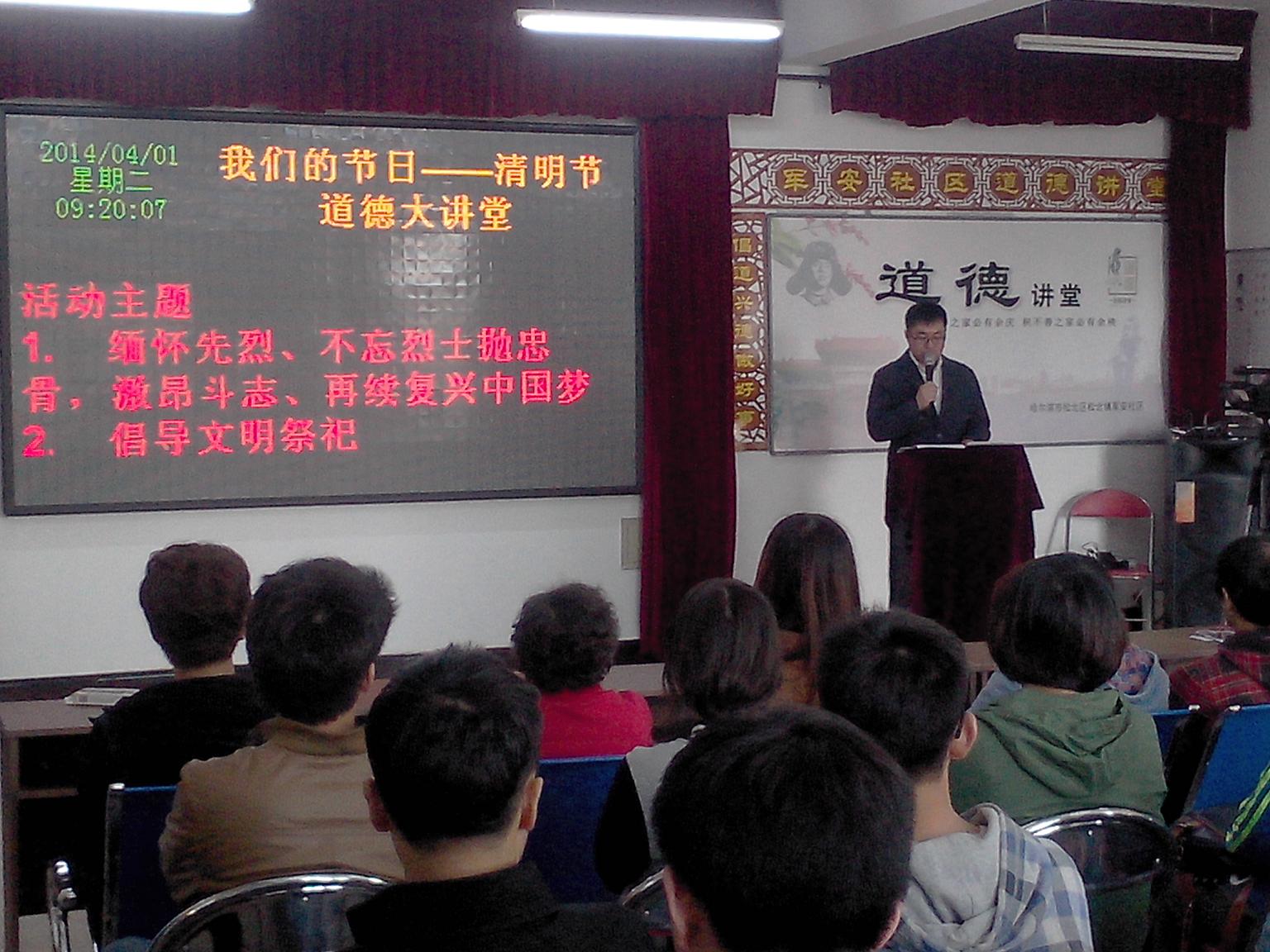在清明节即将到来之际,为倡导文明祭祀,缅怀先烈,再续复兴中国梦,大力弘扬“爱学习、爱劳动、爱祖国”的精神,管理学院团委数十名同学于4月1日参加了军安社区开展的以“我们的节日——清明节”为主题的道德大讲堂活动。