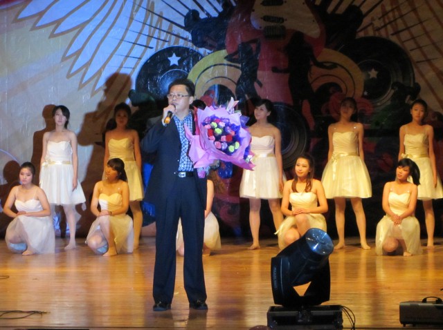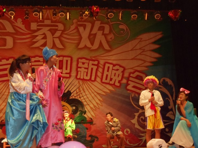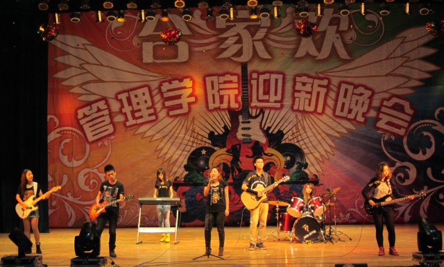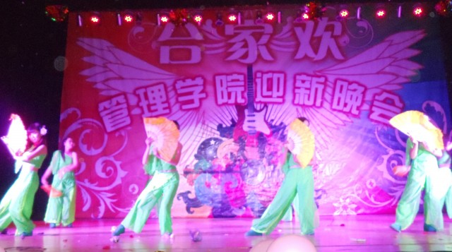 晚会节目以一段DV开始,这段DV中包含了2012级新生与老师、导生之间从入学、军训直到现在的点点滴滴,深深的感动了在场的每一个人。而后,火辣的开场舞《Fire Baby》直接点燃了现场火爆的气氛。管院MAD SEVEN乐队高昂欢快的《恋爱ING》、火爆激情的拉丁《On The Floor》、唯美感人的《因为爱情》、团委学生会的节目等相继登台演绎,台上欢歌舞动,台下荧光闪烁,全场在欢快、轻松、和谐的氛围中将晚会推向一个又一个高潮。而谭士元书记饱含深情地演唱《母亲》、李德学部长慷慨激昂的诗朗诵《我骄傲,我是中国人》、孟庆吉辅导员铿锵有力的《青春畅想曲》更是唱到了同学们的心田、诵出了同学们的心声,受到了全体新生的喝彩,全场掌声雷动,老师与学生之间的距离感越加模糊,此刻我们都是“管院人”。在表演中,有许多个节目都受到了同学们一致的好评,但最能给同学们带来欢笑的非同学们自导自演的话剧《孔雀东南飞之中国好媳妇儿》莫属了,它那跌宕起伏的剧情、奇思妙想的编排、华丽的道具、精心挑选的演员更是此次晚会中精彩闪亮的一笔。晚会最后,2012级全体导生集体上台联唱,面对带领着他们熟悉商大的师哥师姐们,所有2012级新生们热烈欢呼、饱含激动,大家伴着歌曲《相亲相爱》,抱着花束与玩偶,献给他们最敬爱的老师与导生,晚会气氛也由此进入了巅峰。
