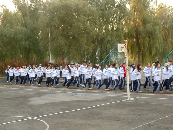 红日初升,朝霞满天。每天清晨6:20,迎着清晨的第一缕阳光,2012级所有新生伴着习习秋风在篮球场集合,整个过程井然有序,组织良好。虽然早起并不容易,可当同学们慢跑于柏油路面上时,清新的空气,和煦的阳光,使所有人都精神饱满起来。晨练不仅锻炼了同学们的身体,更是磨练了同学们坚韧的意志,每一个同学在晨练过程中都迈着整齐的步伐,喊着响亮的口号。一个月坚持下来,同学们纷纷表示:“体质增强了,心情变好了,习惯更是培养起来了。”同时,大二、大三、大四的同学们也各自进行有氧慢跑、清晨小规模篮球运动等丰富多彩的晨练活动。