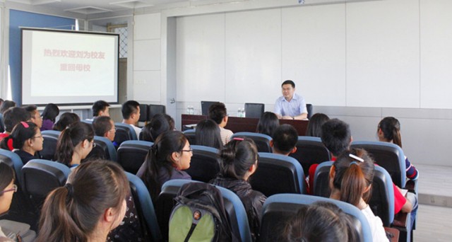 2012年9月6日下午,就职于国务院扶贫办的刘为校友重回母校,在管理学院310室为大家做了精彩的讲座,讲座涉及到学习、工作、生活等多个与同学们切身相关的内容。在学习方面,刘为校友就如何面对高考后与名校间的差距,继而如何用四年时间认真学习,努力缩短差距等问题为同学们提供了建议;在工作方面,刘为校友现身说法,用他个人的成功经验讲述了如何在工作中三年不鸣、一鸣惊人的传奇;在生活方面,刘为校友以他和身边同学的事迹再现了有理想、有报负的大学生的拼搏状态,并与同学们分享座佑铭“春夏秋冬,都要热情;酸甜苦辣,都有营养;成功失败,都是经验”以求共勉。