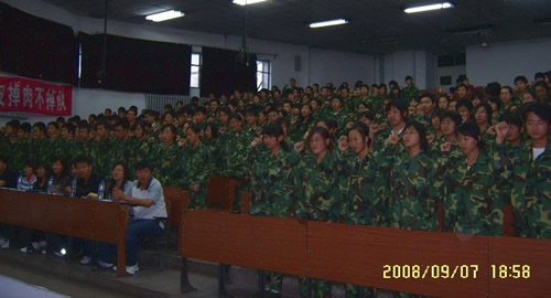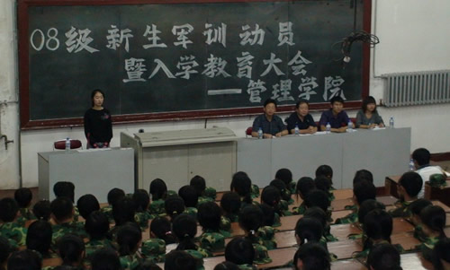 9月7日,学院召开了08级新生军训动员暨入学教育大会。学院学工办成员、新生导生、2008级全体新生参加,大会分南北两个会场进行。让新生明确军训的意义、目的、要求及注意事项。把国防教育、革命传统教育和爱国主义教育结合起来。同时教育新生明确了政治进步、专业学习、校规校纪、身心健康、创业成才以及安全稳定等方面的要求。使学生充分认识到从中学到大学转变的人生意义及肩负的社会责任,帮助新生树立科学的世界观、人生观和价值观,使其明确学习目的,端正学习态度,增强学习动力,积极营造严谨勤奋的学习风气、团结友爱的生活氛围、乐观进取的心理状态和严格分明的纪律观念,增强学生“自我教育、自我管理、自我服务”意识,创造整洁、有序、安全、和谐的寝室学习、生活和工作氛围,实现成长成才的目的。