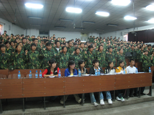 2007年9月2日17时,物流学院在南区综合楼多功能厅隆重召开了“07级新生军训动员暨誓师大会”。学院谭士元书记、团委书记张春梅、辅导员陶晓明、各班导生、学生会主要干部及07级全体新生参加了大会。
