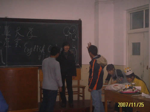 2007年11月25日晚,在哈尔滨商业大学南学区综合楼0713教室里,举行了希望英语学会会员英语互动交流活动。活动在《Big Big World》的美妙旋律中拉开了序幕。全体成员积极学唱。同时以新会员为主体的话剧表演《白雪公主》、《大话西游》、《梁山伯与祝英台》依次进行。在此期间教室里气氛热烈,掌声不断,表演者流利的口语令大家赞叹不已。随后,进行了以英语猜词的《我猜,我猜,我猜猜》活动。活动中大家争先恐后,反映热烈。可谓“八仙过海,各显神通”,大家对此次活动投入了极大热情。