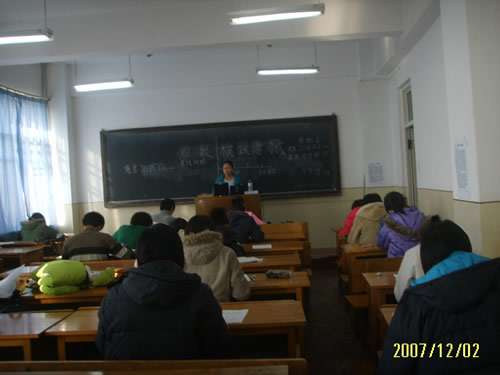 12月2日上午。希望英语学会在综合楼7楼组织了英语四级模拟考试。这次考试旨在使同学们提前适应四级考试,找到自己的不足之处。此次考试是严格按照四级考试的程序来进行的,面向南区各院,报名参加的人很多。考试纪律很好,同学们答题非常认真,状态极佳,似乎在参加真正的考试。考试结束后,学会请英语老师阅卷,成绩公布于众。