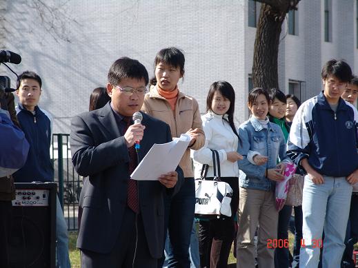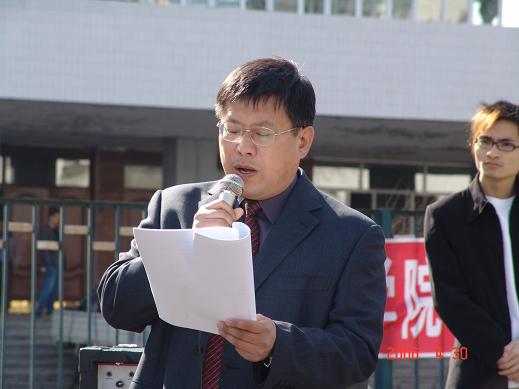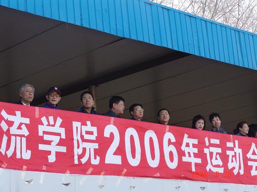 白院长在开幕式上致词,首先代表全院师生欢迎应邀参加本次运动会的学校领导及各位嘉宾,并强调了本次运动会“以促进学校体育运动发展,增强师生身体素质;为本科教学评估作贡献,巩固体育教学成果;积极锻炼体育竞赛队伍,全校赛事再创佳绩”的主题,并宣布物流学院2006年首届运动会正式开始。