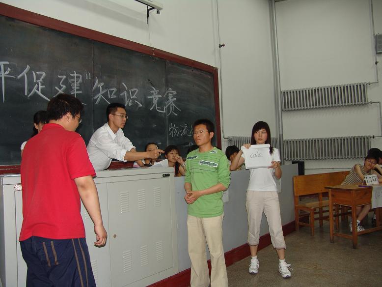 我院04、05级学生分为七组参与知识竞赛,分别为04物流管理队、04商品学队、05物流管理队、05商品学队、05物流高职队、物流学会队及学生会代表队。竞赛现场座无虚席,气氛热烈融洽。竞赛分必答题、抢答题和风险题三部分。每一环节均以评估常识和一定课外知识为主,七支队伍分别派出选手作答。竞赛同样设置了观众答题环节,主持人说出一道与我校评估相关的题目,由观众抢答,答对者由学习部颁发奖品。竞赛最后设置了英语平台环节,每支竞赛代表队派出两名选手参与英文猜词。最后,院学生会代表队荣获竞赛第一名,04商品学代表队、05商品学代表队及物流学会代表队分获二、三名。