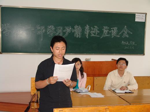 学院书记谭世元、辅导员张春梅、王兆国及全体学生干部参加了本次会议。谭书记简要介绍了我校校友尹静在工作岗位上的先进事迹,倡导学生干部以尹静为榜样,将尹静的吃苦耐劳、服务人民的思想深入到学生干部队伍及全院学生中。之后,院学生会副主席向与会的全体人员朗读了我校第三十九期评建简报上转载的国内各大媒体关于尹静先进事迹的报道,使同学们受到极大触动及鼓舞。了解了尹静的事迹后,部分学生干部发言,他们谈到,要将老校友尹静树为自己学习和生活的一个榜样,将尹静精神深入贯彻到自己的思想中去,深入开展学生工作,将尹静思想渗透到每一个同学心中。会议最后,谭书记提到我院将以此为契机开展多项学习尹静精神的大型活动,望广大学生干部积极参与,献言献策。