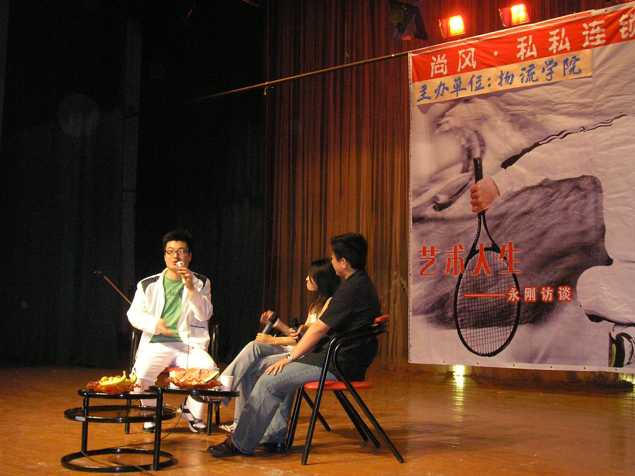 主持人首先对永刚进行了访谈。然后,多位大学生向永刚询问了问题。永刚老师凭借自身的学识和在工作过程当中积累的经验,与大家畅谈了多彩却又迷茫的大学生活、美丽却又布满荆棘的爱情、渴望却胆怯的职场生涯。给大学生活指明了方向,扫除了大家在感情上的困惑,并为大学生以后的就业献计献策。