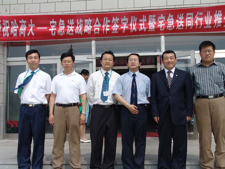 6月25日下午2:00,由物流学院牵头,哈尔滨商业大学和宅急送快运有限公司在主校区国际会议中心举办了战略合作签字仪式。杨铭铎书记代表曲校长和宅急送陈平总裁签字并交换了签字书。宅急送将在物流学院设立贫困生奖学金和企业定向培养基金。前者支持贫困学生完成学业,后者由宅急送负责学生在读期间学费、生活费,毕业后直接就业宅急送,实施订单式人才培养模式。黑龙江省物流采购联合会、省商务厅、交通厅、发改委、民航总局、市工商局、税务局有关领导以及全校部分师生出席了该签字仪式。黑龙江省电视台、哈尔滨市人民广播电台、新晚报、生活报、黑龙江晨报等新闻媒体前来采访。