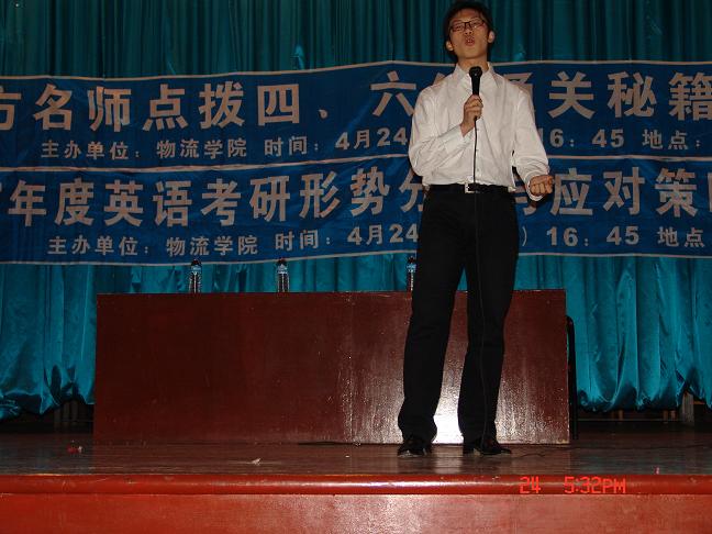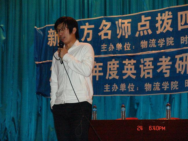 4月24日物流学院邀请新东方英语老师为我院研究生及考四六级考生作专题讲座。由吴云舟、李春亮、罗娉等组成的讲师团为我院学生做了精彩的演讲,讲座中新东方的老师语言风趣幽默,本来单调乏味的英语课堂在新东方的老师口中成了一个个有趣的英语句子,同学们在其中学到了许多的学习技巧。在以往英语考研以及四六级学习中只是一味的背单词,认为在记住单词后就会在考研和四六级中就不用担心了,在这一方面新东方的老师作了详细的讲解,告诉同学们背记英语单词的一些方法和技巧。并对阅读和作文复习和应试技巧上都给予了充分的指导。