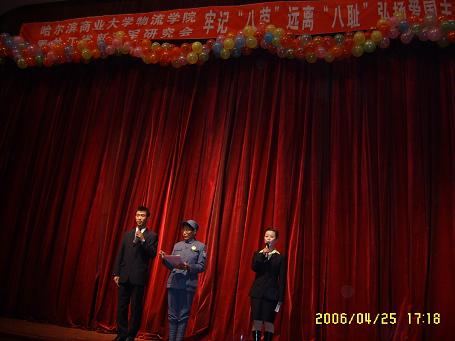 4月25日晚,由物流学院和黑龙江新四军研究所联合举办的以“牢记八荣远离八耻、弘扬爱国主义,”为主题的大型联谊晚会在我校南区学生礼堂隆重举行。