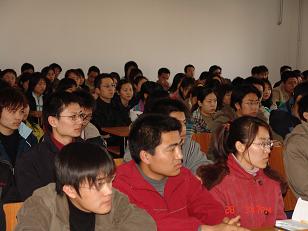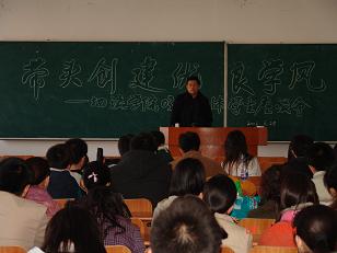 白院长首先对学校“迎评创优”工作做了进一步动员,随后就评估中涉及学生的十二个重要方面为与会的同学作出了认真讲解。白院长指出,迎评工作是我校近期的头等大事,评估的成败与否与同学们个人息息相关,所以同学们要时刻铭记“校兴我荣,校衰我耻”,尽自己最大的力量打赢评估这场硬仗。随后,白院长对03级同学比较关心的考研问题做出了一系列讲解与分析。学校的政策历来是鼓励学生考研,我院一直鼓励学生在力所能及的情况下向更高层次发展。院长和书记还针对我校近年来学生的考研情况作出了详实、透彻的分析,帮助同学们掌握当前形势,并对考研过程中同学们遇到的问题进行了解答。