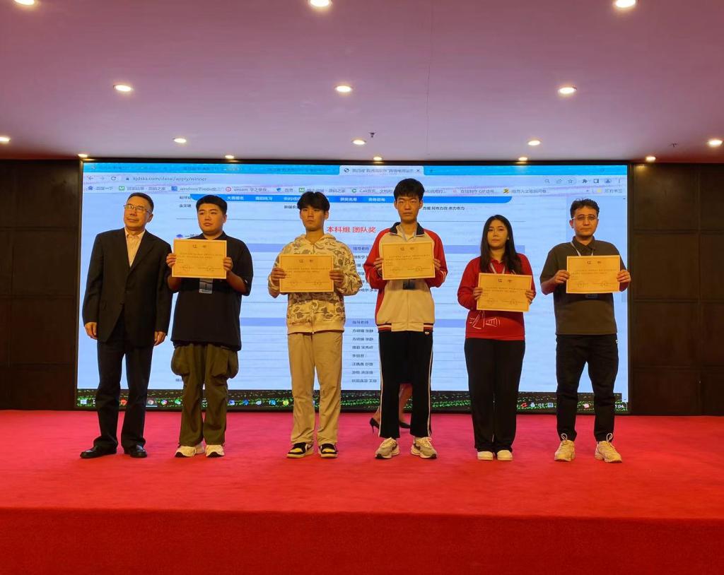经济学院国际经济与贸易专业两支代表队(左二、左三)分获团体奖一等奖