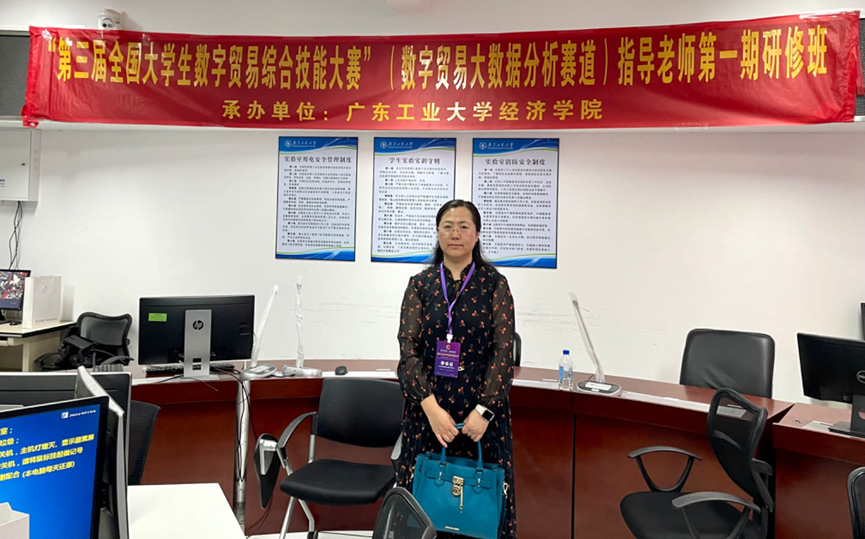 近日,“第三届全国大学生数字贸易综合技能大赛”(数字贸易大数据分析赛道)指导教师第一期研修班在广州举行。全国大学生数字贸易综合技能大赛是由浙江大学中国数字贸易研究院主办,全国大学生数字贸易综合技能大赛组织委员会承办,与全球数字贸易博览会同步推出的全国大学生学科竞赛活动。为适应数字经济带来的贸易模式创新和人工智能快速迭代,探索高校数字贸易课堂教学与学科竞赛的深度融合,以高质量的人才培养模式变革推动学生高质量创业就业,特开设了本次指导教师研修班。本次研修班由全国大学生数字贸易综合技能大赛组织委员会主办,广东工业大学经济学院承办,共有来自全国80余所高校的近百名指导教师参加。我校经济学院选派国际经济与贸易专业指导教师陈德慧副教授参加研修班。