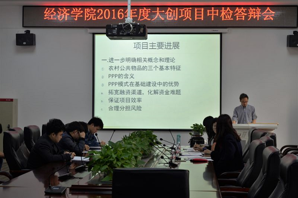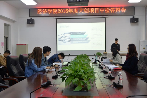 为保证2016年大学生创新创业训练计划项目顺利开展,经济学院于2017年3月21日下午在经济学院1209会议室成功举行2016年大学生创新创业训练计划项目中检答辩会。