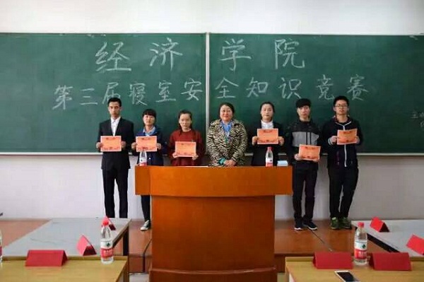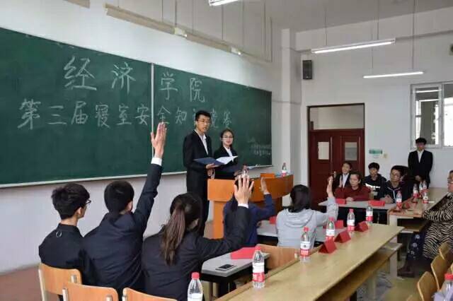 为增强我院学生的安全意识,提高学生防控寝室险情的能力,创造温馨、舒适、安全的寝室环境和氛围,我院特于4月28日中午举办了经济学院第三届寝室安全知识竞赛。院党委副书记武皓,团委书记、2014级辅导员沙靖宇,团委副书记、2015级辅导员尚振华、2016级辅导员李娜出席了本场比赛。