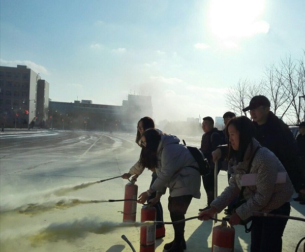 校保卫处副处长徐勇向我院学生详细介绍了在平时生活中存在的安全隐患、提醒学生们应该意识到消防意识的重要性。他说提高消防意识有很多要点:第一,平时要保持良好的消防安全习惯,禁止将火种带入教学楼、寝室等人员聚集场所,从根源消除火灾隐患。第二,119是我国的火警求救电话,当有火灾发生时,应第一时间拨打火警求救电话向火警求救。第三,面对火灾一定要冷静、镇定、不慌乱,采取正确的火警求救措施。寝室是一个容易发生火灾的地方,学生们应避免使用一些违规电器,消除安全隐患。同时,防火科科长肖俊峰向我院学生演示了干粉灭火器的正确使用方法,使同学们对救火设备有了充分的了解和认识。学生们也积极认真的听取讲解并亲自体验了如何使用干粉灭火器灭火。武皓书记及辅导员们也参与其中,为学生做出了示范。