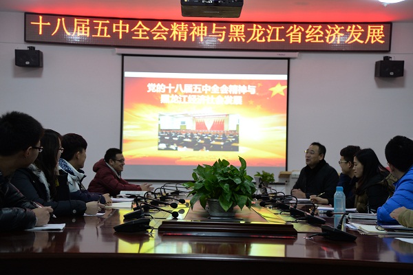 报告会上,项义军教授从全面建成小康社会决胜阶段的形势、“十三五”时期经济社会发展的指导思想、主要目标和基本理念、“十三五”时期各项发展任务和重大举措、加强和改善党的领导为实现“十三五”规划提供坚强保证、黑龙江省社会经济发展目标五个方面展开,对党的十八届五中全会精神作了深刻的阐述和解读。