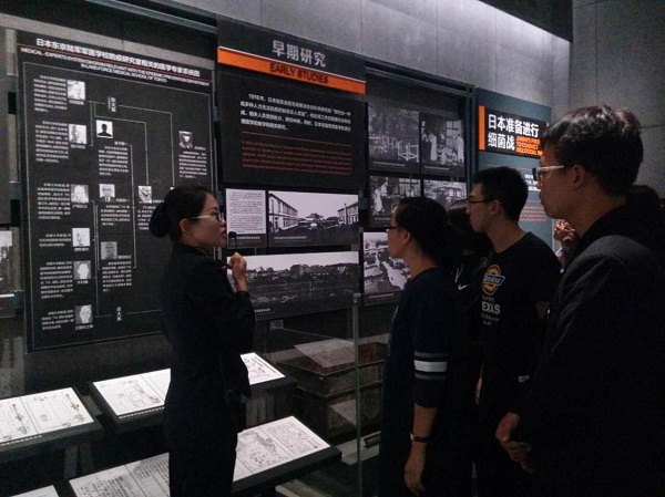 走进阴暗的展室,听着讲解员的讲解,所有人的手和心都在颤抖。日本军国主义的侵华战争,灭绝人性的细菌试验,惨不忍睹。曾经的血腥场面在这里一次次上演,那些惨绝人寰的屠戮就像发生在昨天,大学生似乎听到了撕心裂肺的哀嚎。惊人的数据更是令他们震惊·,仅在1939年至1945年这段时间里,至少有三千人在日军反人类试验中被残杀。在细菌战过程中,至少有三十万人受到屠杀和残害,中国人曾在这片土地惨遭日本侵略者的血腥毒手!