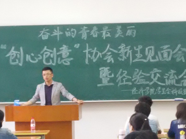 9月23日下午4点40分,我院团委于0113教室举办了首届“创心创意”科创协会的新生见面会暨经验交流会,本次见面会“以奋斗的青春最美丽”为主题,旨在让大家对科技创新有更多的了解,更积极踊跃地参与到科技创新活动中来。我院于9月20日成立了名为“创心创意”的学生科创社团,社团成员为对科技创新活动感兴趣的同学,同时我院团委还邀请了专业教师于文武副教授为学生做科创方面的培训。