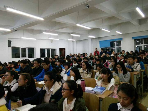郝大江副院长向同学们介绍了“挑战杯”中国大学生创业计划竞赛即“小挑”的相关情况,以他带过的队伍举例来说明挑战杯的难度,鼓励学生积极参加挑战杯。并对学生们应如何挑选队友、如何选题、如何写好计划书做出了详细的讲解和举例说明。他还向同学们介绍了参加挑战杯获奖的同学他们现在的发展情况,强调挑战杯对培养大学生创新能力,提高大学生综合素质的重要性,以及参加过挑战杯对于同学们以后参加工作也有着巨大的好处。他指出了学生应当参加挑战杯的原因:一是能将自己专业知识和实践相结合;二是提高学生综合素质的良好方法;三是能为了培养学生的求职就业优势。讲座期间,会场秩序一片井然,同学们都认真的听着郝大江副院长的精彩讲解,并进行互动,讲到精彩处不时传来同学们的赞叹声。