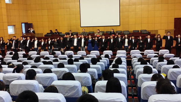 武书记则通过对13级同学们真实学习成绩的分析,向同学们道出了学习的可贵,并借助古语向同学们阐述了学问之道,希望所有的学生能像经营自己的事业一样经营自己的学习,并号召同学们要向青年马克思主义学风示范团学习,让榜样的力量引领我们前行,“让我们学有榜样,行有示范,以榜样的高度为高度,以榜样的速度为速度……”
