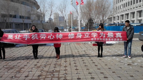 宣传活动之后,我院辅导员及学生会学生将深入课堂严查上课玩手机行为。在今天这个高科技迅猛发展的时代,如何合理的利用,需要的是每一位同学自我思量,大学生是祖国的未来,你们的青春在大学,你们的梦想实现靠大学的知识积累,你们必须要“放下手机,拥抱课堂”同时也希望经济学院的学生能为全校树立一个榜样,行动起来,从健康使用手机开始,端正学习态度,规范课堂秩序,共创优良学风。