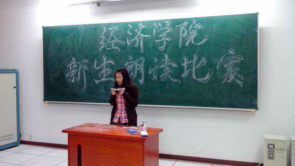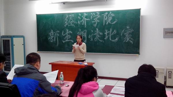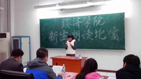 为了营造良好的外语学习环境,促进学生学习外语的积极性,推动我院的学风建设,经济学院于10月11日下午举办了新生英语朗读比赛的初赛。经济学院2013级新生积极踊跃报名参赛,九十余名参赛选手分别在1102、1209、1210三个教室同时进行比赛。陆丰刚、刘福香、马世朋、杨慧瀛、上创利、李艳、韩朝亮、张秋平、田秀杰等九名老师担任了这次比赛的评委。