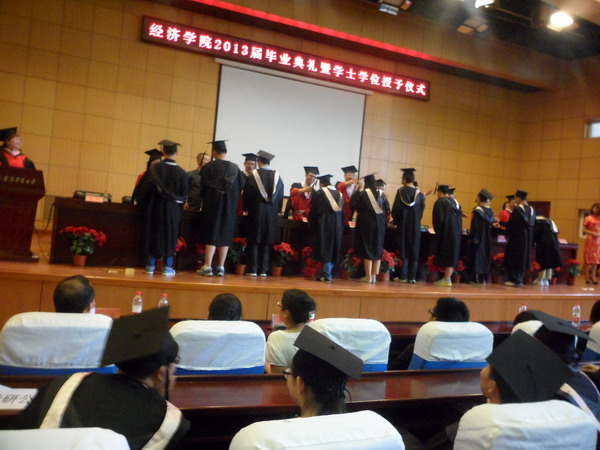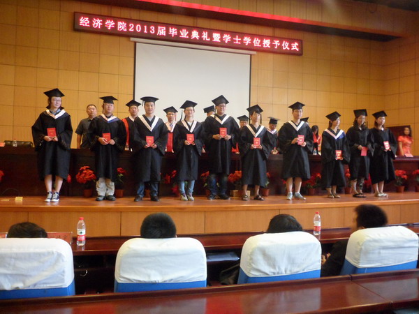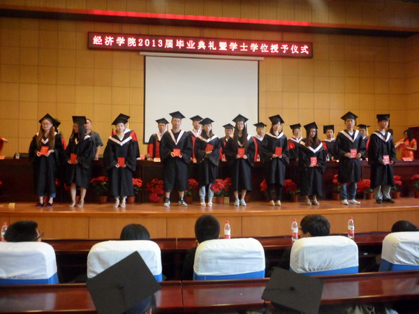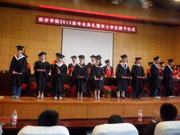 经济学院送走了2013届毕业生,为社会培养了一批优秀的人才,为国家注入了新鲜的血液,他们将发扬我校的优良传统,在实践中追求创新,贡献自己的力量,创造人生的价值,经济学院这片热土,将洒下更多经济学子的青春和梦想,结出更多优秀的果实!