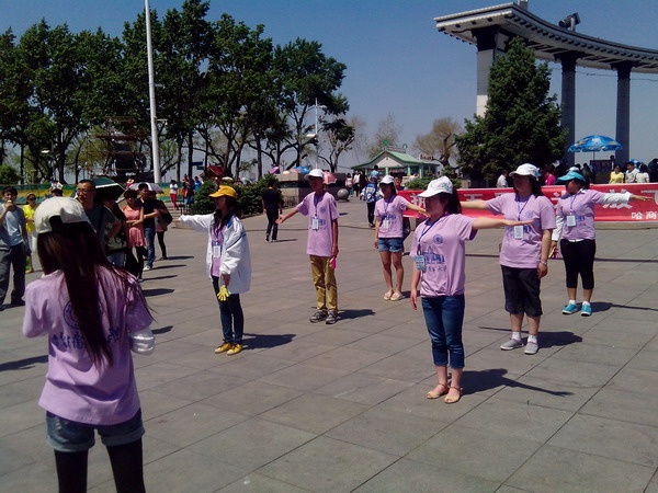 “为爱向前跑”:也许在爱的面前有很多的障碍,但你也得为心中可爱的人向前跑。现场指挥的人在起点焦急地看着面前奔跑的人,当奔跑的人到达终点时,他们忘记了比赛结果,激动地抱在了一起。在骄阳下充当障碍的学生们也被这美好的时刻感染,比赛结束后参与游戏的人愉悦地向我们说:“现代人心理压力都大,你们这活动不错,既能放松心情,还能学到知识!”本次5·25大学生心理健康周系列活动之走上防洪纪念塔在历时两个多小时后圆满落下帷幕。