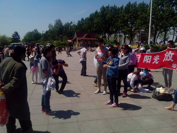 2013年5月25日,第十四个全国大学生心理健康日,微风习习,阳光明媚,防洪纪念塔迎来了一群充满活力的大学生,他们穿着紫色院服,戴着白色帽子,展开着“拥抱五月阳光,放飞心灵梦想”的条幅,热情地邀来周边的人们参与活动,这是一支来自哈尔滨商业大学经济学院的大学生队伍,在此举办5·25大型心理健康户外宣传活动,倡导全社会关注心理健康,放飞心灵梦想,当天的活动得到了哈市广大市民的参与,取得了良好的宣传效果,受到了游客和市民的好评!