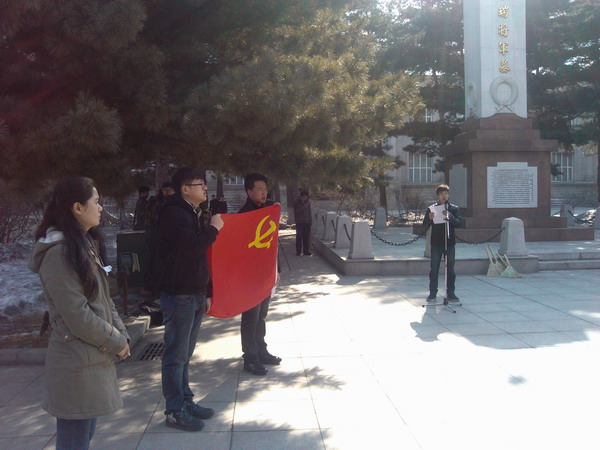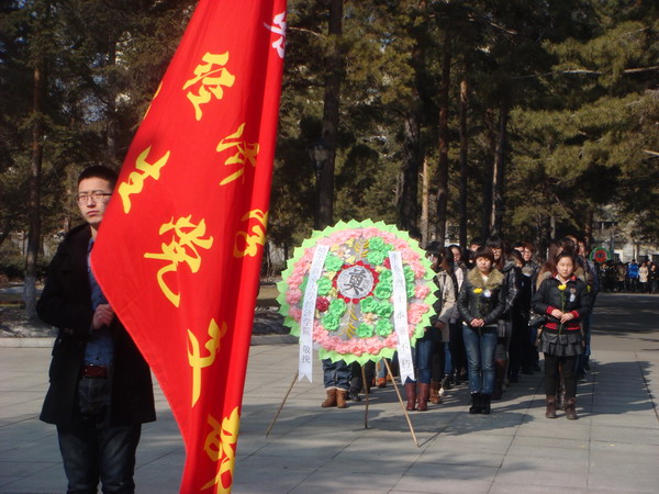 哈尔滨烈士陵园是国务院首批确定的全国重点烈士纪念建筑物保护单位,全国百个爱国主义教育示范基地之一,在这里安眠着抗日战争、解放战争、抗美援朝、社会主义建设及改革开放等不同时期牺牲的228位烈士,解放战争中牺牲的我党最高将领朱瑞将军和当代军人的楷模苏宁烈士是其中的杰出代表。3月30日上午8点,经济学院在校全体学生党员在学生党支部负责人辅导员尚振华老师带领下来到了哈尔滨烈士陵园,开始了本次特别党日活动。