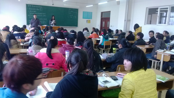 2010级辅导员尚振华老师深入到班级中,配合任课老师,对学生到课情况进行检查