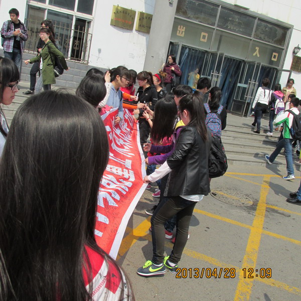 中午11时,经济学院秘书部及青年志愿服务部全体成员在A区食堂门口摆放展台拉开条幅,向过往同学做“光盘行动”号召和宣传,并邀请同学们在“光盘行动能量正,永续民族节俭风”条幅上签字。在活动中,大家纷纷在宣传条幅上签上了自己的名字,表示为响应“光盘”行动,从这个中午开始。落笔就是一个承诺,签字代表一个信念,条幅上满满的字就是经济学子的重重的承诺和信念。