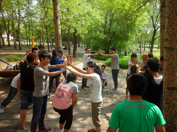 首先,大家先开始两个小时的自由活动熟悉太阳岛环境,在自由活动时期,老师组织一部分同学帮助卫生阿姨进行垃圾清捡,做义务志愿者,进而培养学生干部的环保意识。大约在十点半,大家聚集在栖凤台,进行一系列的素质拓展活动:在松鼠搬家环节中,同学们互相积极配合,在游戏中增强学生干部解决棘手问题的能力;在猜字环节中,感受到提升自己的能力才能促进团队共同进步。一个个看似简单的项目,折射出一个个发人深省的道理,友谊的暖流缓缓在大家心中流动着,让我们真正感受到了大家庭的力量。