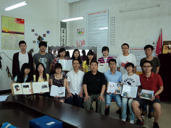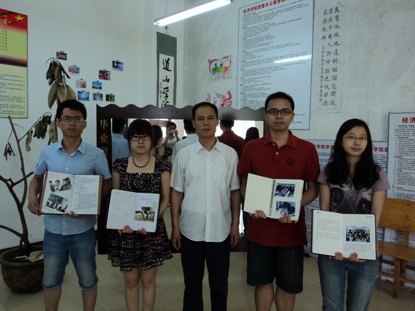 今年6月,经济学院439名毕业生就要惜别学习生活了多年的母校,奔赴各自的工作岗位。从入校时在心头默念“今日我以母校为荣,明天母校以我为荣”的万丈豪情,到此刻的挥手作别的依依不舍,他们心中充满了对母校的感恩与依恋。2012年6月8日上午10时,2012届各班班干代表齐聚经济学院1112办公室,他们选择在毕业前夕,送上一份礼物——一架精美的实木镜,作为一瓣心香献给悉心培育他们的学院。经济学院党总支书记韩平教授,团委书记兼08级辅导员孟宪弢老师热情地接待了毕业生代表,并亲手接受了同学们这份沉甸甸的情意。