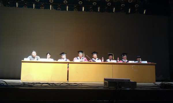 2012年6月19日下午1点整,哈尔滨商业大学经济学院隆重召开2012届本科毕业生表彰奖励暨毕业典礼、学士学位授予仪式。大会由经济学院团委书记孟宪弢老师主持,出席大会的领导有:经济学院党总支书记韩平教授、院长项义军教授、副院长郭振教授,王涛教授,经济学教研室副主任王彦庆老师,院团委副书记沙靖宇老师,2010级辅导员尚振华老师,兼职辅导员秦立昆老师,部分家长、在校生代表及2011届全体毕业生。