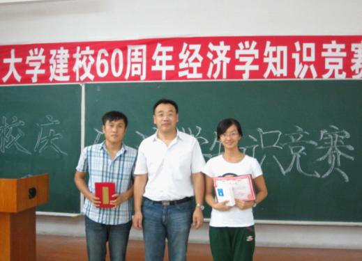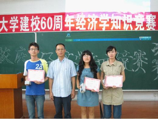在此,谨向在本次“庆祝建校60周年经济学知识竞赛”活动中获奖的一、二、三等奖及优秀奖获奖队伍和选手致以热烈的祝贺!向对本次竞赛成功举办给以亲切关怀的校领导,提供了无私援助和支持的各兄弟院系老师和同学,以及经济学院的诸位领导、老师和同学致以诚挚谢意!