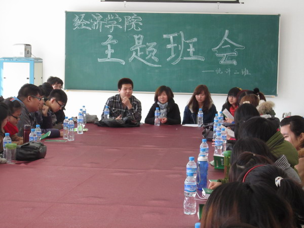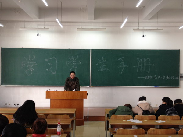 2012级辅导员孟宪弢老师深入学生班会,为学生讲解《学生手册》