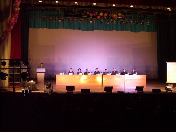 2011年10月28日下午5时整,哈尔滨商业大学经济学院2011级新生开学典礼、表彰大会暨迎新晚会在B区大礼堂隆重召开。参加此次晚会的嘉宾有哈尔滨商业大学经济学院院长赵德海教授、经济学院党总支书记韩平教授、经济学院副院长郭振教授、王涛教授、项义军教授,经济学院教研室主任张英教授、院团委书记孟宪弢老师、团委副书记沙靖宇老师、10级辅导员尚振华老师及各兄弟学院学生会主席,08、09、10级学生代表及2011级全体新生。开学典礼由经济学院党总书记韩平主持。
