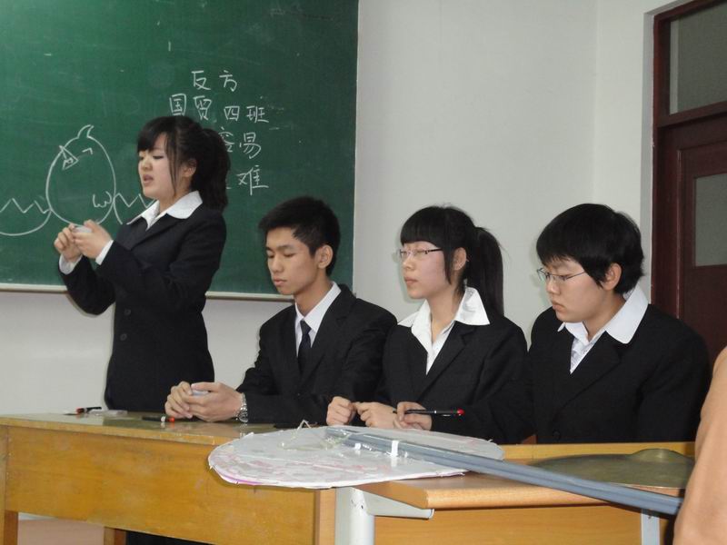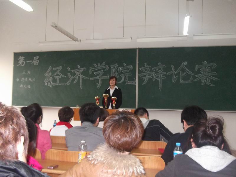 为了丰富我院学生的课余文化生活,提高学生思辨及团队合作能力,在院领导指示和关心下,经济学院首届辩论赛圆满落幕。2011年4月8日经济学院首届精英辩论赛决赛最终场在3105教室巅峰对决。经济学院院团委学生会主席团成员担任评委,09年校辩论精英团队作为嘉宾出席,各班同学在院团委学生会组织下以饱满热情观看了比赛。最终,国贸五班以294.5分勇夺本届精英辩论赛桂冠,国贸一班摘得亚军,季军由国贸四班获得。