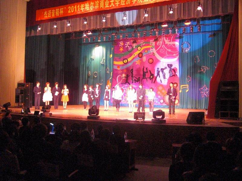 2010年4月28日下午5点30分经济学院第六届“杰迈音箱杯”音乐风采大赛决赛于东区大礼堂拉开序幕。出席本场比赛的嘉宾有:校团委副书记贾妮燕老师,经济学院党总支书记、副院长韩平教授,兼职辅导员韩晶、程栋老师及各兄弟学院主席团、我院往届学生会成员。本场比赛的评委有:08、09级辅导员孟宪弢老师,07、10级辅导员沙靖宇老师,2010年度十佳校园歌手冠军王越,2010年度明星制造冠军王海鹏,第4届音乐风采大赛冠军李雪娇。本次大赛特别鸣谢校团委贾妮燕老师对我院活动的高度重视,在百忙中抽出宝贵时间莅临指导。