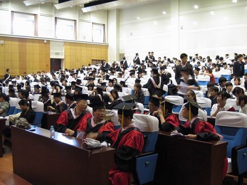 随后进行的学士学位授予仪式将毕业典礼的气氛推向了高潮。毕业生们穿着崭新的学士服,神情庄重的走向主席台,当导师将流苏从右侧移向左侧时,他们完成了人生的一次飞跃,从此他们将带着大学毕业生的光环走向社会,开始人生的另一段征途。