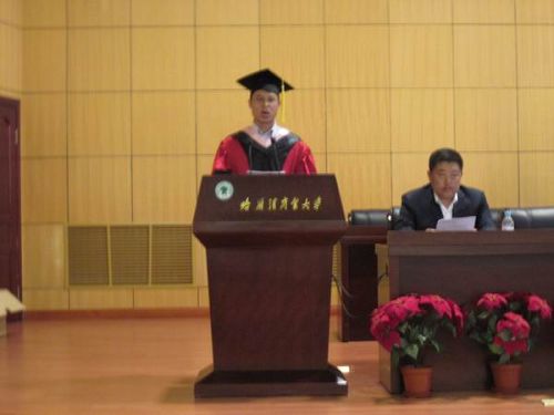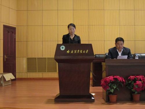 教师代表国贸教研室李娟老师的发言情真意切,充满了对毕业生的依依惜别之情。李娟老师代表全院教师希望毕业生在以后的工作岗位上要真诚做人,认真做事、要志存高远,不断完善自我,把自己打造成全面发展的高素质人才。