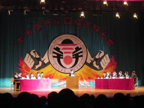 2010年5月6日17时30分,由校团委学生会组织的哈尔滨商业大学第八届“新希望”杯校园精英辩论赛决赛在东区大礼堂拉开战幕。黑龙江电视台影视频道影视之家“我是大民星”节目主持人郭晓,黑龙江省社会主义学院学报副主编吴艳春受邀担任了此轮比赛的评委,九大组织负责人及各院主席作为嘉宾出席并观看了此次比赛。各学院同学在校学生会的有序组织下以饱满的热情观看了此次比赛。